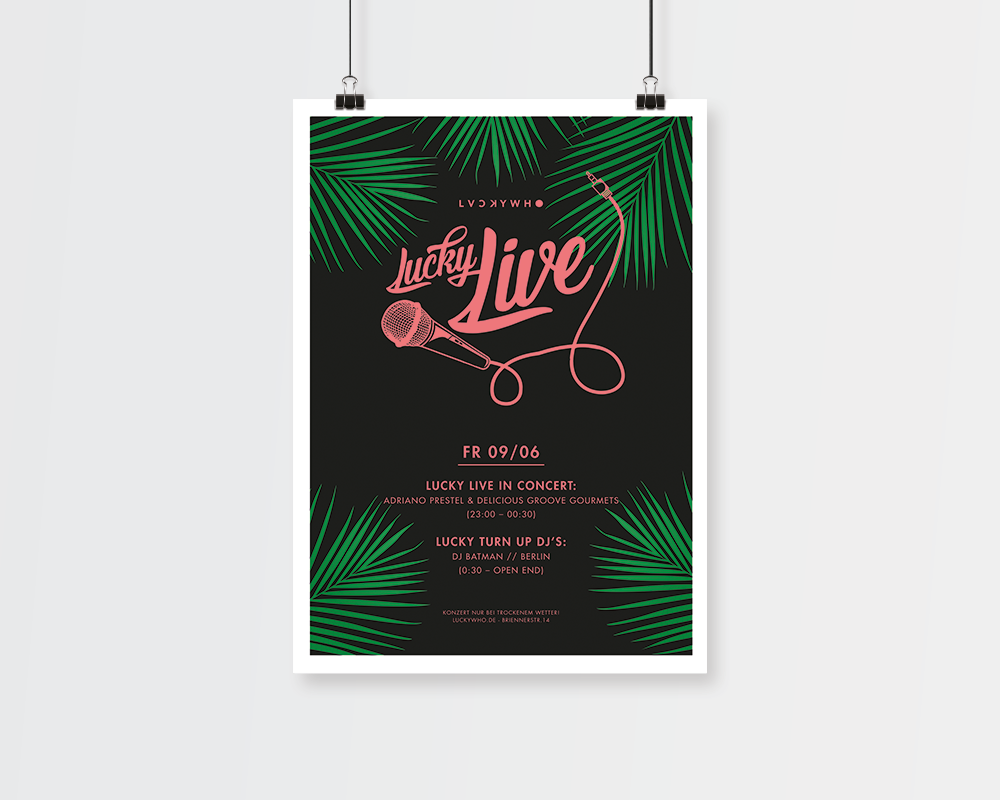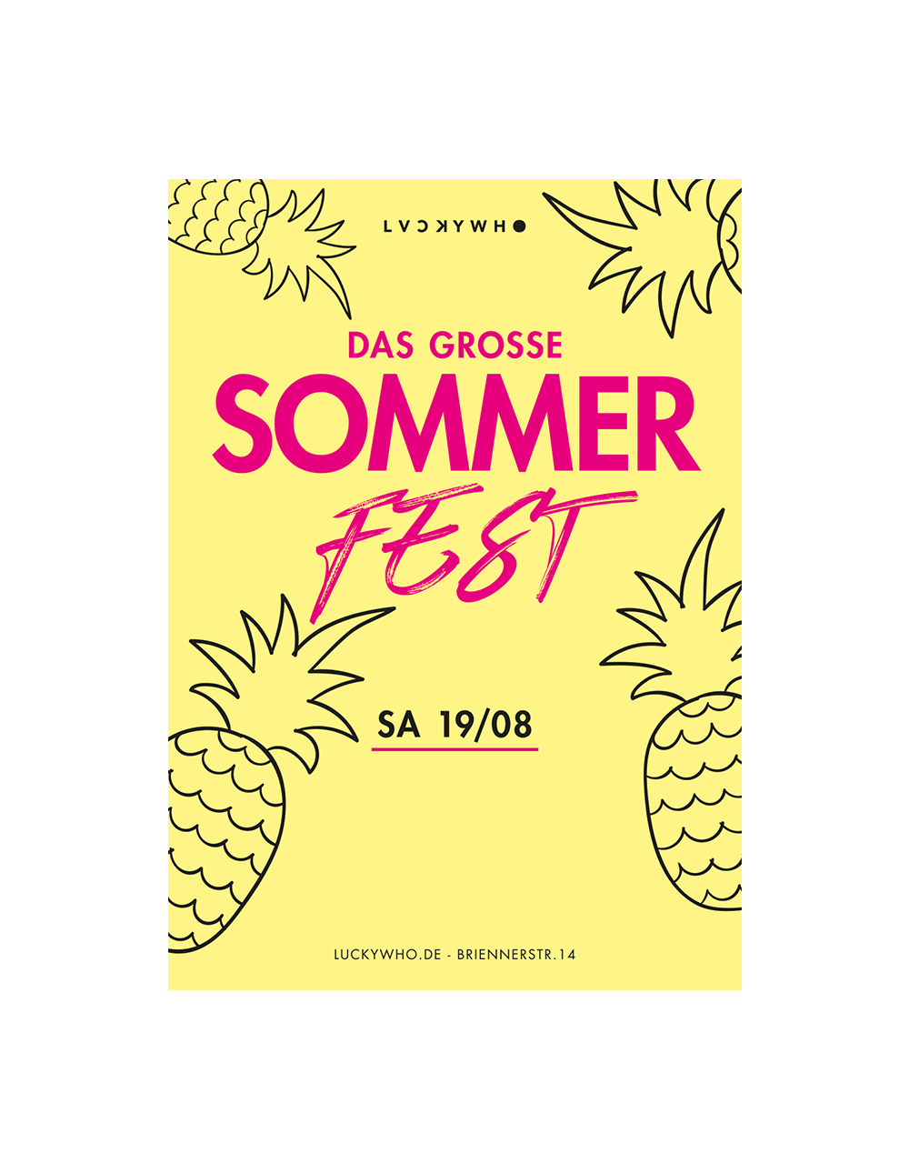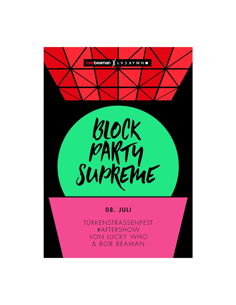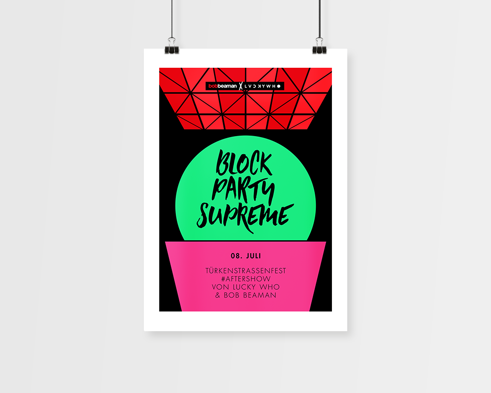 As a Graphic Designer I developed and created several poster prints for the Munich based night clubs Lucky Who, Bob Beaman and Frauen 26. In addition to that I designed the official event poster for the street festival Türkenstraßenfest.